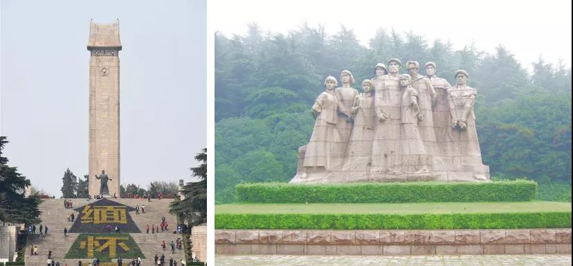 雨花台烈士群雕是雨花台风景区的标志建筑,建于1979年,高10.03米,宽14.2米,厚5.6米,由179块花岗岩拼装而成,总重量约1300吨,它主题突出,层次分明,上实下虚。那戴着镣铐、蔑视敌人的工人;横眉冷对的知识分子;怒目圆睁的农民;临危不惧的女干部;咬紧牙、抿着嘴的小报童;身陷囹圄、充满胜利希望的女学生;栩栩如生地再现了九位先烈在就义前英勇不屈、视死如归的光辉形象。