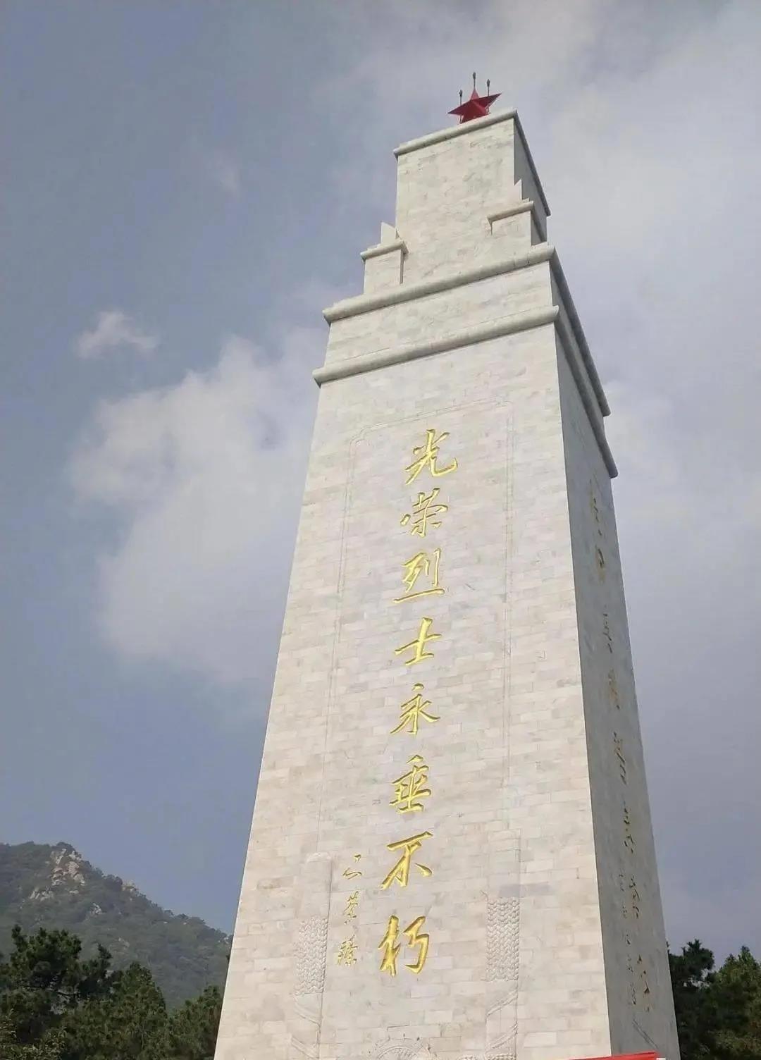 烈士纪念碑,巍然矗立在陵园北部最高的地方。碑基是1177平方米,碑身用汉白玉石块砌成,上面镌刻着齿轮麦穗图案,象征着工农联盟。碑高27.5米 ,在一二十里外就能瞻仰它的雄姿,它象烈士纪念碑征着革命先烈的崇高形象。碑身正面,镌聂荣臻元帅的亲笔题词:"光荣烈士永垂不朽"八个镏金大字 ,光芒耀眼。左侧镌谢觉哉题词:"永远活在人民心中";右侧镌宋劭文题词:"抗日英雄浩气长存";后面镌李运昌题词:"为人民革命事业而牺牲的英雄们永垂不朽"。题词表达了党和人民对革命先烈的无限敬仰和深切怀念。