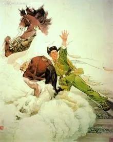 千钧一发之际,从部队的行列中猛然冲出一个战士,他奋不顾身地跃上铁路,抢在机车的前面,用尽全身的力气把战马推出轨道之外……