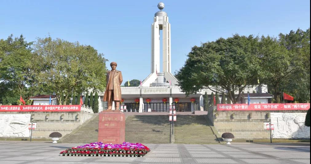 聂帅陈列馆由主馆和铜像广场组成,占地约20亩,铜像广场宽阔平坦,两组大型浮雕分列左右,聂帅铜像耸立中央。