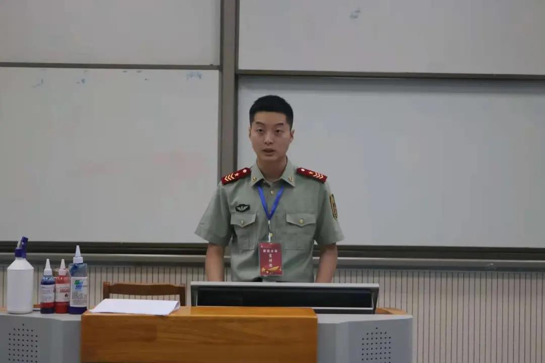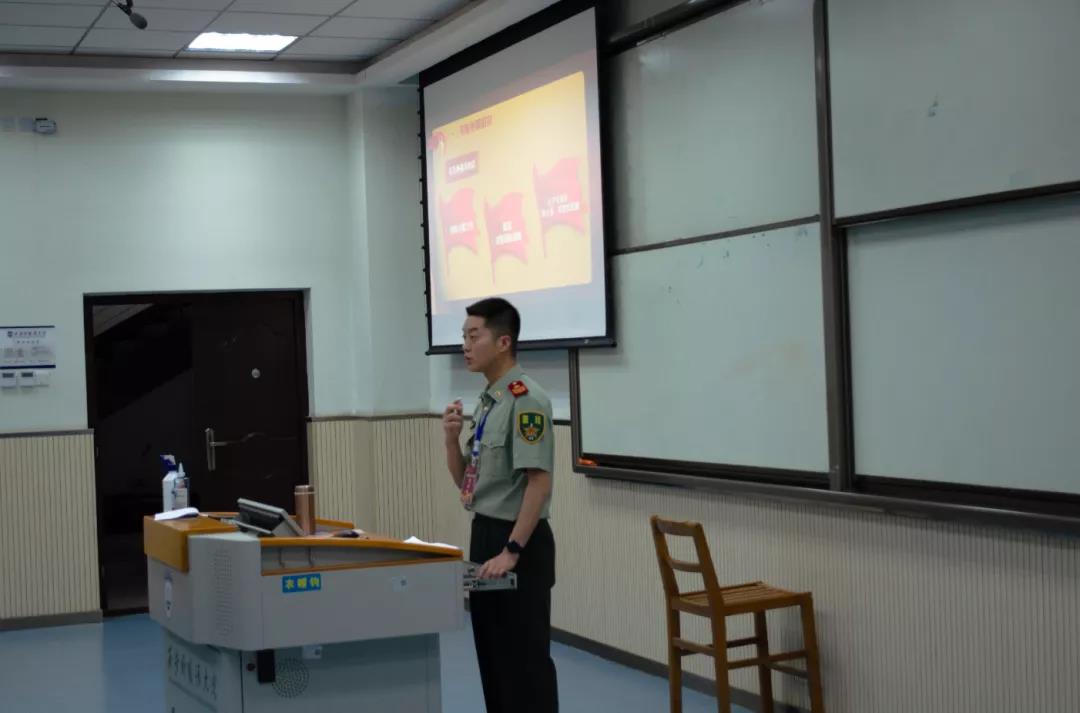 随后,贾亮亮从军队基础知识、征兵的流程和条件以及大学生参军的五大政策三个方面详细的讲解了参军入伍的整个过程。首先,在军队基础知识方面,贾亮亮介绍了义务兵和士官、军官的区别,军队的日常生活作息、新兵分训的事宜、下连队之后的日常工作,为同学们揭开了军队的神秘面纱。其次,在征兵的流程和条件方面,贾亮亮着重讲解了同学们关心的体检问题,他谈到体检并不困难,只要大家平时坚持锻炼都可以通过体检,尤其是体重和视力。随后,他谈到了预征报名的重要性和在学校报名基本流程。最后,在参加入伍政策宣讲方面,贾亮亮讲到了参军的五大政策即优先参军入伍、优先选拔录用、考研升学优惠、学费补偿与助学贷款代偿、就业安置优惠等,又从入伍前、服役中、退伍后三个阶段详细讲解了相关优惠政策的规定和申请方式。