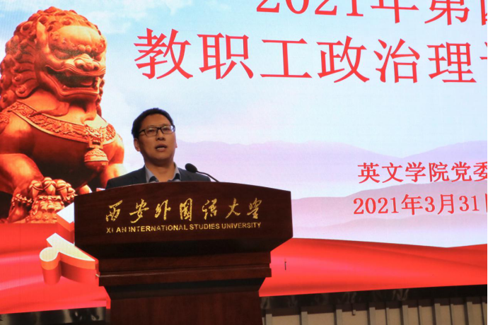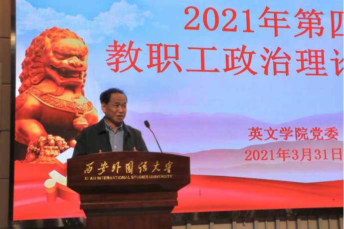 单升军结合党史学习教育,领学了《习近平新时代中国特色社会主义思想学习问答》中第66问《为什么要着力培养担当民族复兴大任的时代新人?》与第75问《为什么说立德树人是新时代教育的根本任务?》。他通过解读《香香漫画 庆祝建党100周年活动实施方案》,再次动员全院师生积极参与到百年党史双语党课、百个党史双语微故事、党史百题双语词汇翻译大赛、百首红歌比赛、百个红色景点“云”参观活动与百件实事征集活动等“6个一百”庆祝活动。