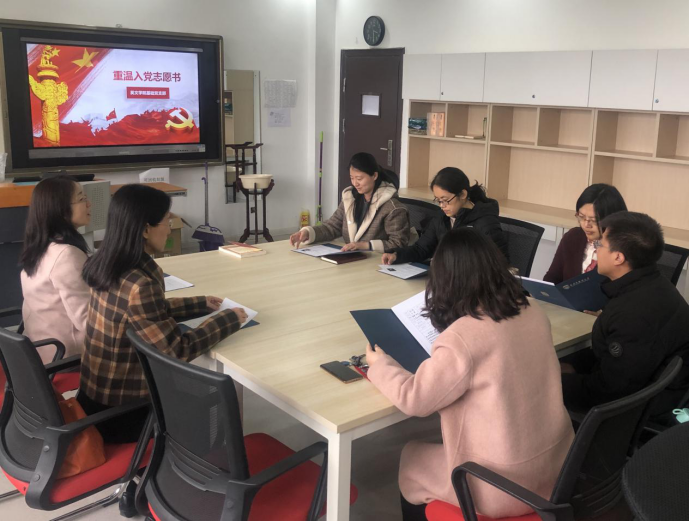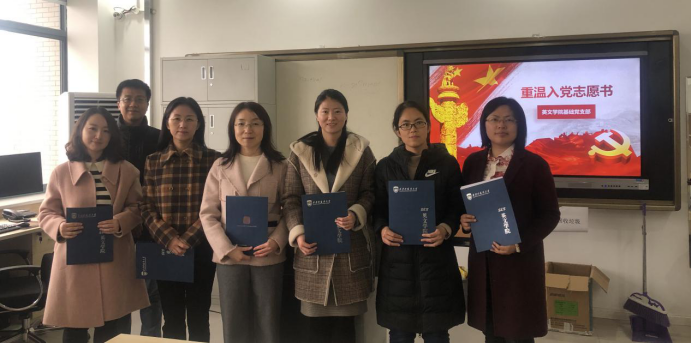 基础英语党支部在JB403开展了“重温入党志愿书”的主题党日活动,支部书记王汐主持活动。