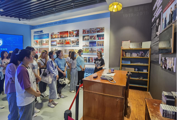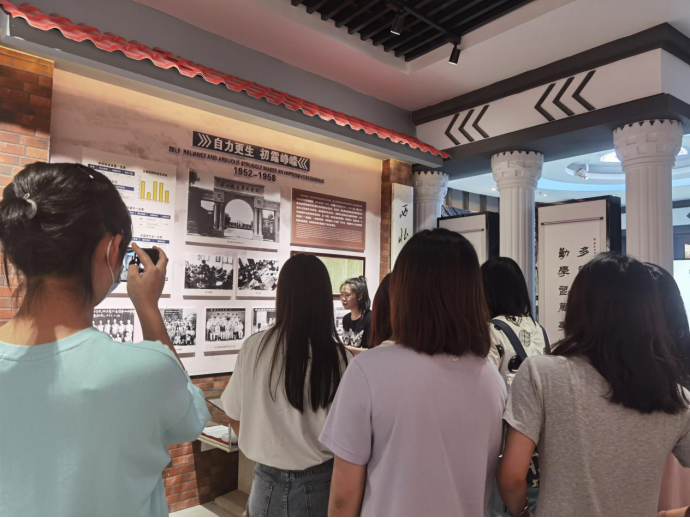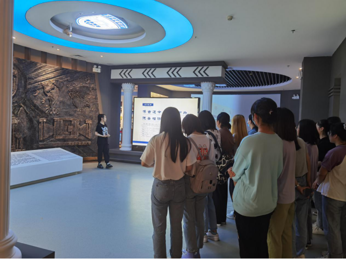 步入校史馆,雕刻着西外大门的展示墙以及投影在地上的西外校徽映入眼帘。这面墙展示了西外从1952年的西北俄文专科学校建立至今的历史变迁。在讲解员的带领下,同学们依次参观了各个展厅。一块块展板,一个个展柜,令同学们切实感受到我校深厚的历史积淀、光荣艰辛的办学历程、丰硕的办学成果以及奋发的进取精神。展板上的老照片及展柜中的物件记录了我校自建立以来的峥嵘岁月及卓越成就,同学们深受我校历史底蕴的吸引,深感震撼。
