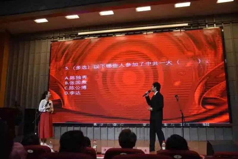 比赛间隙还穿插进行了舞蹈、双语朗诵、党史知识趣味答题、相声等节目。