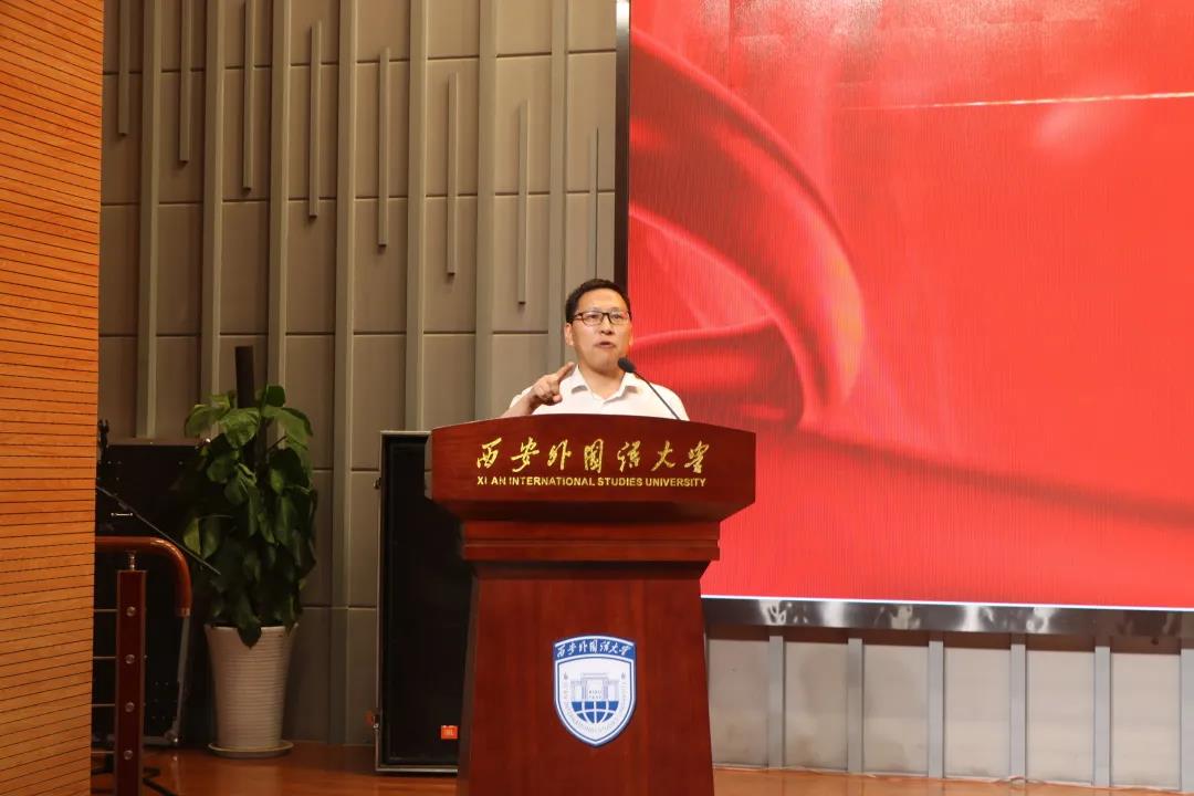 当晚,红歌大赛在单升军书记热情洋溢的致辞中拉开了序幕。单老师深情地指出每一首红歌都是一面旗帜,每一首红歌都是一段历史,百首红歌大赛是我们学习党史的重要途径之一,他说,中国共产党成立以来,锻造形成的党的精神谱系是我们宝贵的精神财富,七支决赛队伍以七种精神命名,旨在通过歌声传递中国共产党人精神谱系的内在力量,通过歌唱展现新时代青年人的精神风貌。他勉励所有英文学子“听党话·跟党走·感党恩”,努力让青春之花绽放在祖国和人民最需要的地方。